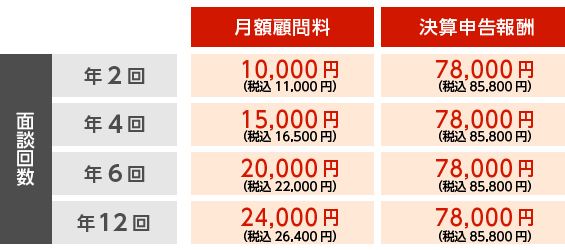 - 12か月後の決算申告報酬から、こちらも1万円分を割引で対応します。