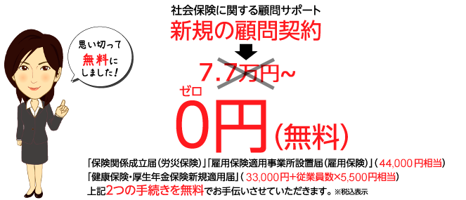 当事務所では、月額3,000円(税込3,300円)~の労務顧問サポートをご提供させていただいております。「自分で手続きするのが面倒だ、考えたくもない!」そんな方はお気軽にお問い合わせください。